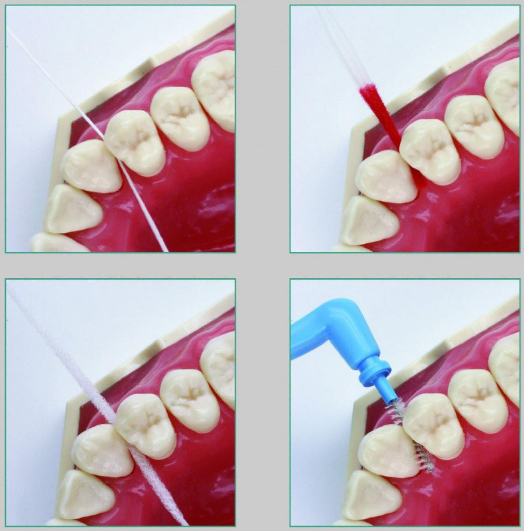 Für die möglichst langfristige Erhaltung des Behandlungsergebnisses ist die systematische, regelmäßige und intensive Säuberung des Zwischenraumes eine wichtige Voraussetzung. Dazu braucht der Parodontitis-Patient Hilfsmittel wie Zahnseide, Zahnhölzer, Flauschzahnseide und Interdentalbürstchen.